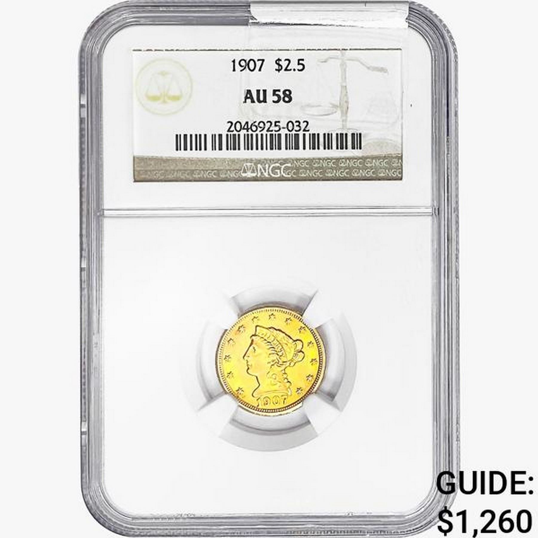 1907 $2.50 Gold Quarter Eagle NGC AU58