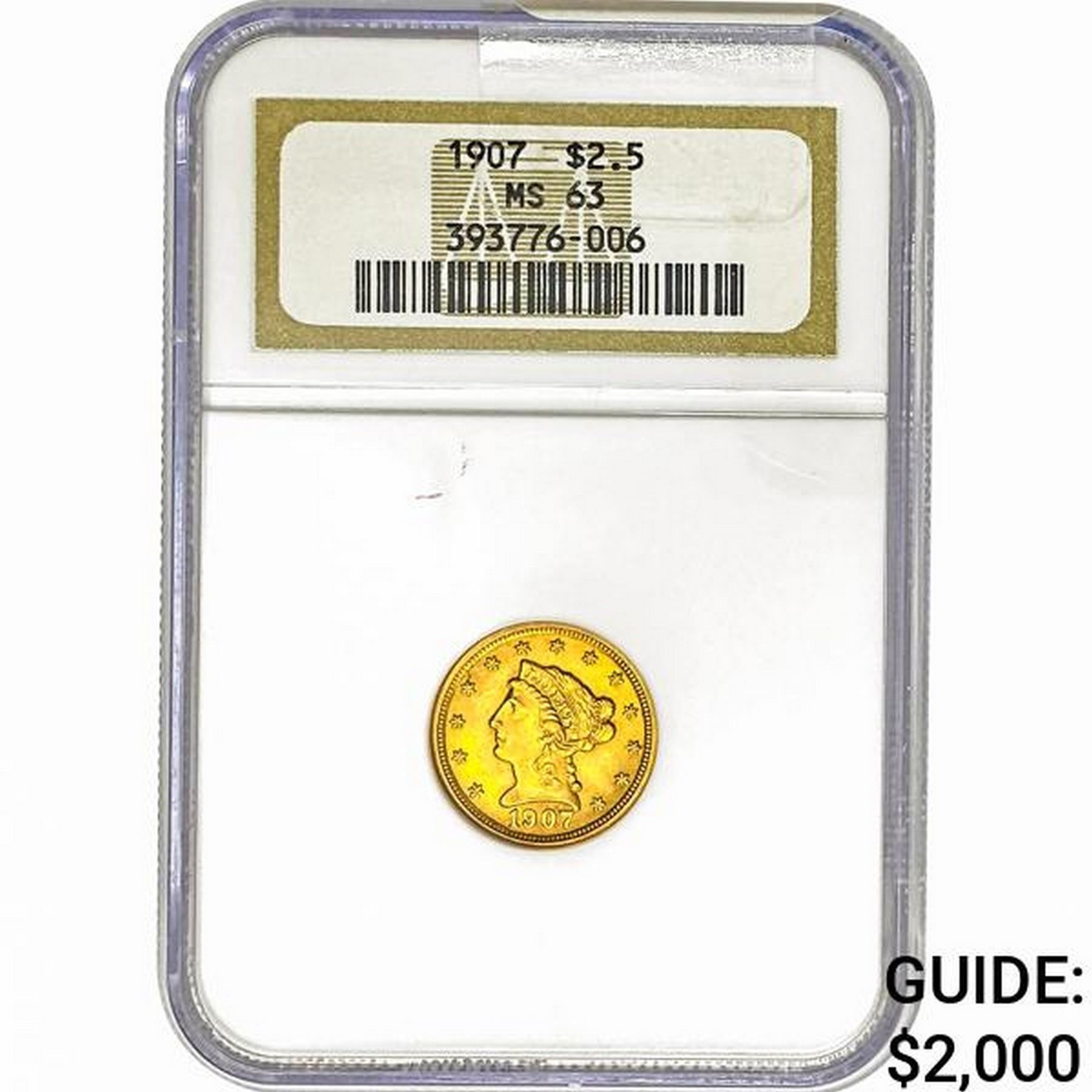 1907 $2.50 Gold Quarter Eagle NGC MS63