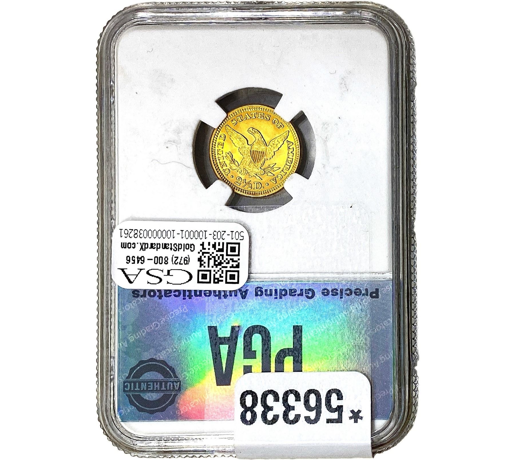 e. Coins sold referencing a third-party grading service are sold “AS IS” without any express or implied warranty, except for a guarantee by GSA that they are genuine. Removal or alteration of the holder, voids all of Bidder’s claims concerning that Product. Certain warranties may be available from the grading services and Bidders are referred to them for further details: Numismatic Guaranty Corporation (NGC), PO Box 4776, Sarasota, FL 34230, www.ngccoin.com/services/writtenguarantee.asp; Professional Coin Grading Services (PCGS), PO Box 9458, Newport Beach, CA 92658, www.pcgs.com/guarantee.html; ANACS, 6555 S. Kenton St., Ste. 303, Englewood, CO 80111; and Independent Coin Grading Co. (ICG), 7901 East Bellview, Ave., Suite 50, Englewood, CO 80111.