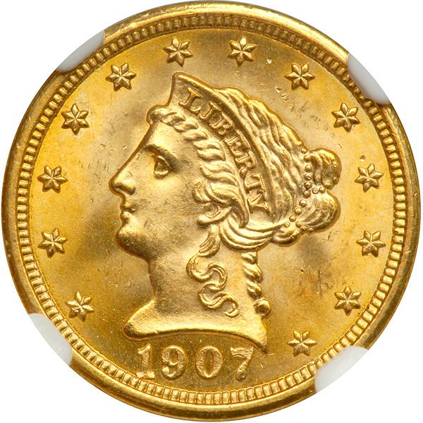 1907 $2.50 Liberty. NGC graded MS-66. Lovely golden toning atop resonant luster. Sheer boldness of strike throughout (PCGS # 7859) .