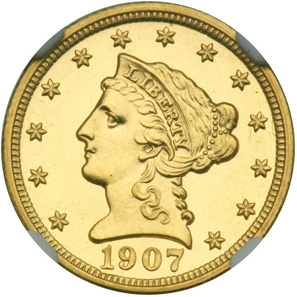 1907. NGC graded Proof 66 Cameo. A well struck untoned gem glittering with cameo Proof brilliance. Only 154 struck. We know of a few impaired to low-level examples, but this lovely Gem Cameo 1907 is well nigh among the nicest representatives of this issue on the market today. Both sides wallow in smooth finish; further, the fields are bereft of bothersome marks. We do not find copper spots or areas of striking incompleteness, either. Best of all, the fields have been imparted with a deep reflectivity. Pop 15; 20 finer (PCGS # 87933) .