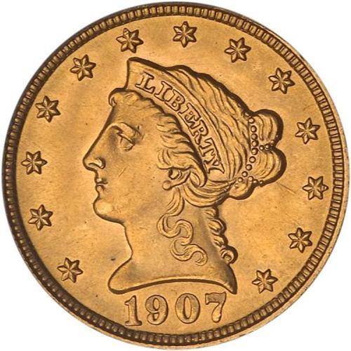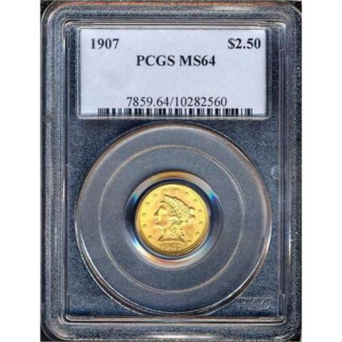 <b>1907 $2.50 Liberty. PCGS graded MS64.</b> A highly lustrous MS64 that has rich golden patina and a razor sharp strike <b>(PCGS # 7859)</b> <i>