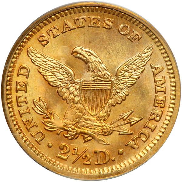 1907 $2.50 Liberty. PCGS graded MS-66. Lovely toning. With flattering mint luster and a minimum number of wispy abrasions, this peach-gold coin is every bit the Gem. Especially bold strike (PCGS # 7859) .