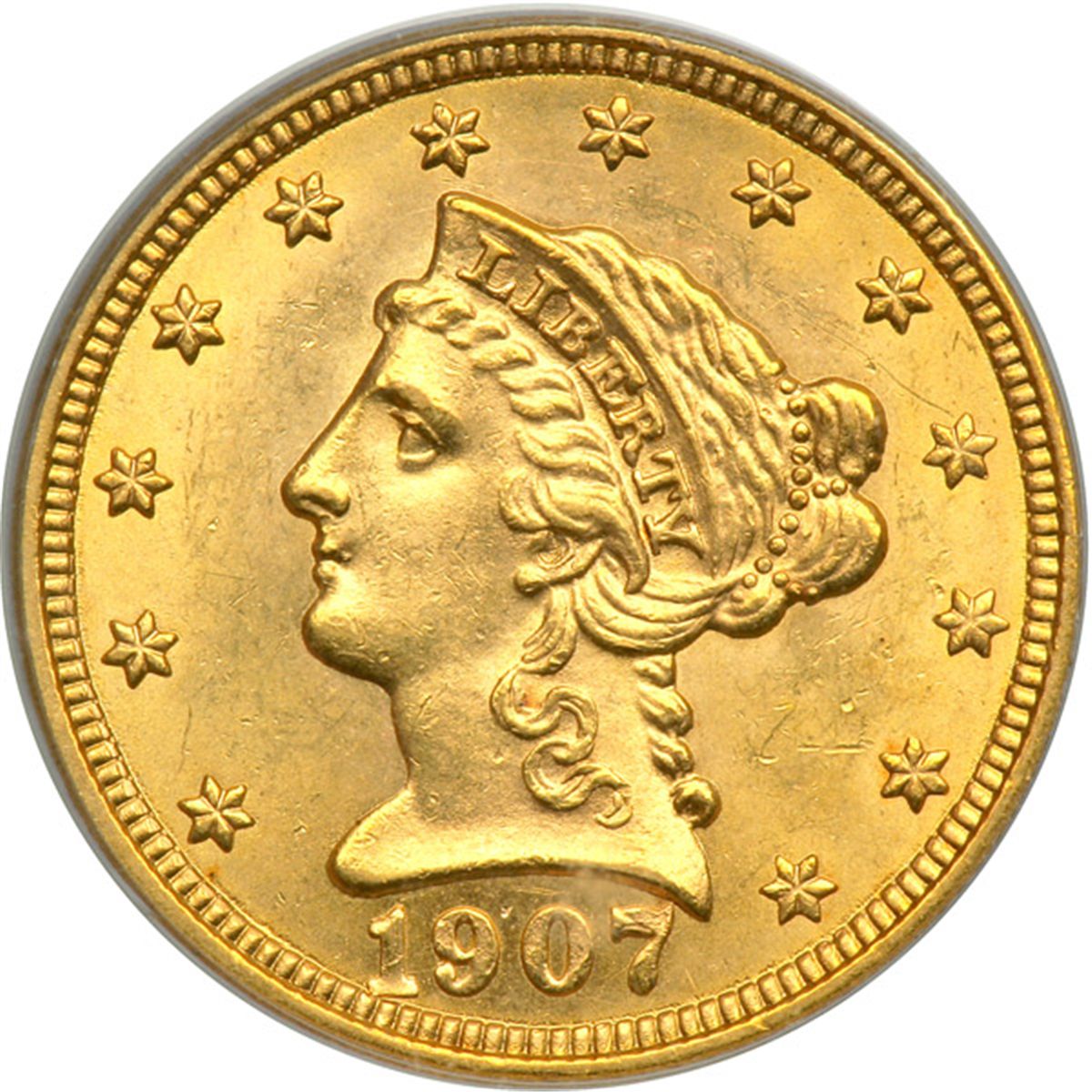 1907 $2.50 Liberty. PCGS graded MS-64. A very choice golden beauty (PCGS # 7859) .