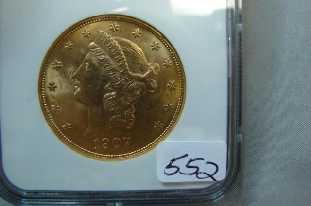 1907 $20.00 Liberty Head Gold Coin NGC MS 61