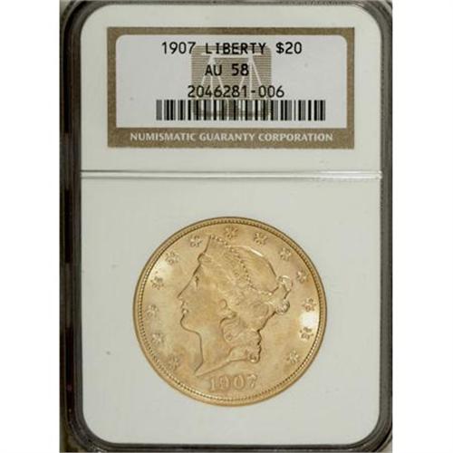 1907 $20 AU58 NGC. NGC Census: (139/20882). PCGS P