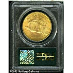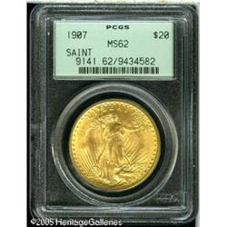 <B>1907 $20 Arabic Numerals MS62 PCGS.</B></I> Exceptional luster for this issue with a superior look for the grade. The fields are minimally abraded and the strike is a bit above average. Lot:9444
