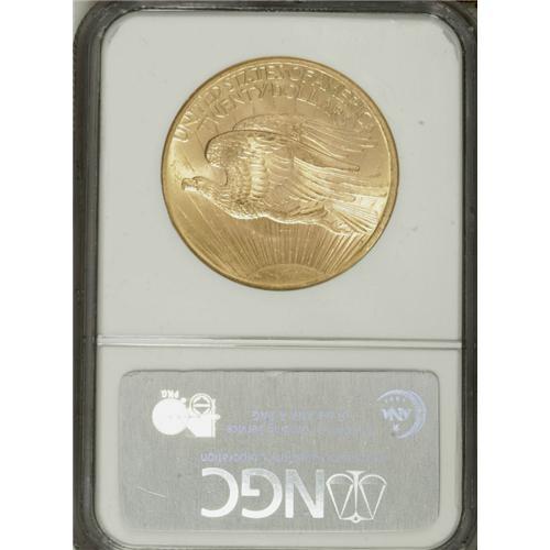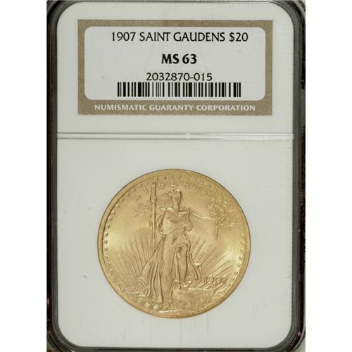 <B>1907 $20 Arabic Numerals MS63 NGC.</B></I> The first year of issue for the design and a popular issue among collectors. This example has soft, frosty mint luster and a suitable strike. Lightly marked overall with a single abrasion of note on Liberty's left (facing) thigh.<BR><I>From The Greg Southward Collection.</B></I><BR><BR><b>Shipping:</b> Coins & Currency (<a target="_blank" href="http://www.heritageauctions.com/common/shipping.php">view shipping information</a>)