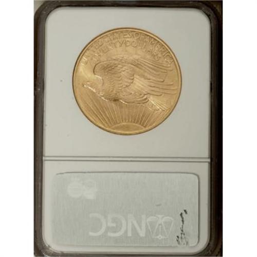 <B>1907 $20 Arabic Numerals MS63 NGC.</B></I> An extremely lustrous example with very clean surfaces and terrific appeal. But for a luster graze in the right obverse field by Liberty's head, this could grade higher. <BR><BR><B>Coin Engraver:</B> Augustus Saint-Gaudens<BR><BR><b>Shipping:</b> Coins & Currency (<a target="_blank" href="http://www.heritageauctions.com/common/shipping.php">view shipping information</a>)