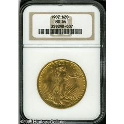 <B>1907 $20 Arabic Numerals MS64 NGC.</B></I> Above average luster and a very clean obverse. Above MS64, this date becomes slightly more difficult to locate. Lot:9448
