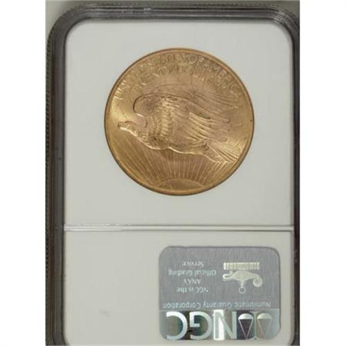 <B>1907 $20 Arabic Numerals MS64 NGC.</B></I> Breen says of the issue that is was so named by collectors who had "manifestly never seen Arabic numerals." This mattelike, khaki-gold piece shows only light abrasions scattered here and there, with some minor strike bluntness on Liberty's head. Nonetheless attractive, and fairly well struck elsewhere.<BR><BR><B>Coin Engraver:</B> Augustus Saint-Gaudens<BR><BR><b>Shipping:</b> Coins & Currency (<a target="_blank" href="http://www.heritageauctions.com/common/shipping.php">view shipping information</a>)