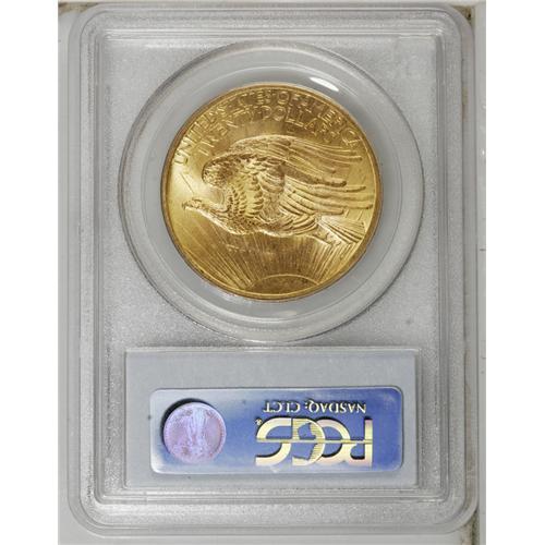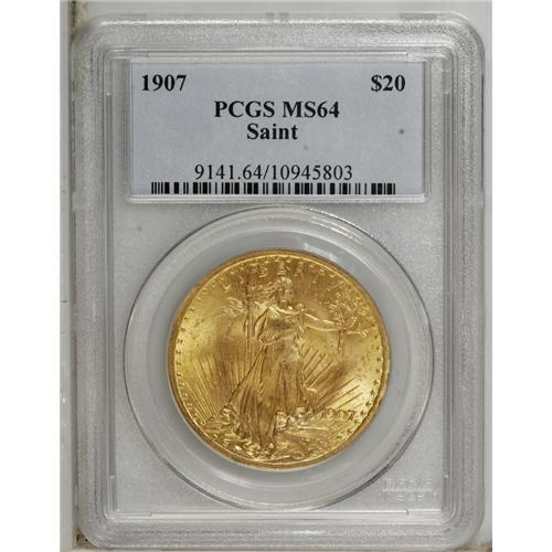 <B>1907 $20 Arabic Numerals MS64 PCGS.</B></I> A Choice yellow-gold example, nicely struck overall with pleasing luster. On the reverse, a light abrasion scores the rays below the eagle.<BR><BR><b>Shipping:</b> Coin/Currency (<a target="_blank" href="http://www.heritageauctions.com/common/shipping.php">view shipping information</a>)