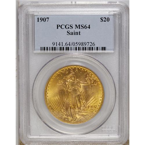 <B>1907 $20 Arabic Numerals MS64 PCGS.</B></I> Apricot-gold surfaces radiate dazzling luster, and exhibit sharply struck design features. A small mark is visible on Liberty's left (right facing) cheek.<BR><BR><b>Shipping:</b> Coin/Currency (<a target="_blank" href="http://www.heritageauctions.com/common/shipping.php">view shipping information</a>)
