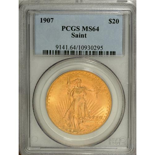 1907 $20 Arabic Numerals MS64 PCGS. Popular first year