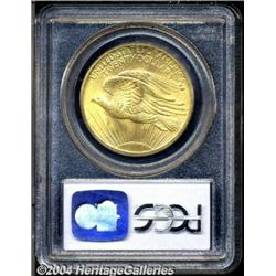 <B>1907<$20> Arabic Numerals MS64 PCGS.</B></I> There is little to detract from the Choice, rose-gold appearance of this lustrous representative. <BR><BR><B>Important notice:</B> Heritage usually auctions material at the rate of 200-250 lots per hour. On some occasions eBay Live bid software or the Internet may not be able to keep up with the pace of the auction. We recommend placing a realistic absentee bid now as insurance to avoid disappointment. Occasionally the auctioneer may eliminate or reject an eBay Live bid, and the auctioneer may also reopen a lot after the close of the eBay live bidding (usually because we missed an audience bid), and may reject your bid even if it shows you as the winning bidder. By bidding via eBay Live, you agree that Heritage may award the lot to another bidder at its sole discretion under the circumstances described above or any other reasonable circumstances. Since eBay bids are not shown to us until we open the lot on the floor, we treat those bids just like floor bids. In most cases the floor responds before the eBay bid is presented to us, due to Internet lag time, so for consistency we have made it a policy that floor bids are always considered first over tie eBay live bids. Also please note that all Heritage lots purchased through eBay Live carry a 20% Buyer's Premium. Please make sure you read the Terms and Conditions before you bid.