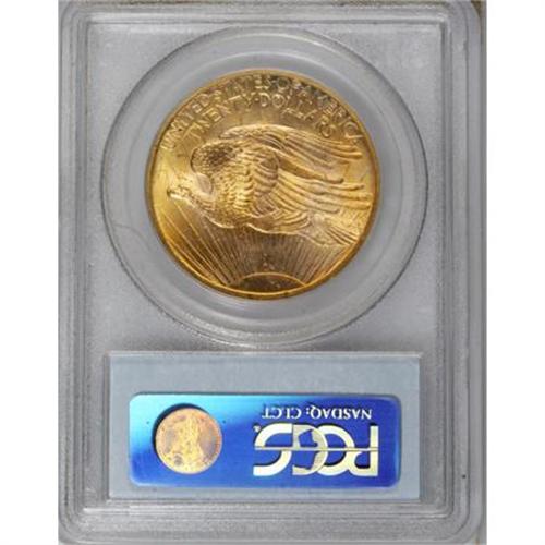 <B>1907 $20 Arabic Numerals MS64 PCGS.</B></I> The sun-gold surfaces of this first-year low-relief example show traces of straw-gold at the lower reverse. Well-defined with a clean appearance, though Liberty's legs and the nearby fields show a few too many marks for a higher grade.<BR><BR><B>Coin Engraver:</B> Augustus Saint-Gaudens<BR><BR><b>Shipping:</b> Coins & Currency (<a target="_blank" href="http://www.heritageauctions.com/common/shipping.php">view shipping information</a>)