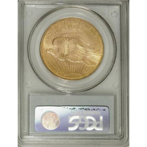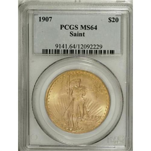 <B>1907 $20 Arabic Numerals MS64 PCGS.</B></I> The yellow-gold surfaces of this first-year low-relief double eagle show soft, yet pleasing luster. Well-defined overall with just a few grade-defining marks on the figure of Liberty.<BR><BR><B>Coin Engraver:</B> Augustus Saint-Gaudens<BR><BR><b>Shipping:</b> Coins & Currency (<a target="_blank" href="http://www.heritageauctions.com/common/shipping.php">view shipping information</a>)