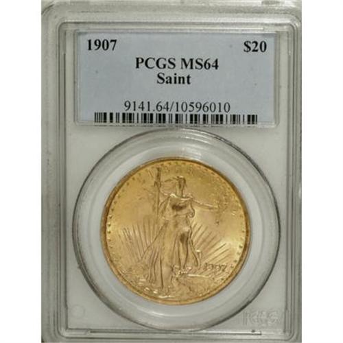 <B>1907 $20 Arabic Numerals MS64 PCGS.</B></I> A crisply struck representative of this first-year low-relief issue, predominantly sun-gold with attractive luster. Congressional action to place the motto "In God We Trust" on the Saint-Gaudens designs would make the 1907 Arabic Numerals part of a two-year variety.<BR><BR><B>Coin Engraver:</B> Augustus Saint-Gaudens<BR><BR><b>Shipping:</b> Coins & Currency (<a target="_blank" href="http://www.heritageauctions.com/common/shipping.php">view shipping information</a>)