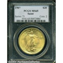 <table><tbody><tr><td><table> <TR><TD width="100%"><TABLE cellSpacing=1 cellPadding=3 width="100%" border=0><TBODY><TR><TD width="100%" bgColor=#79735c><FONT face=arial color=#ffffff size=3><B>Description</B> </FONT></TD></TR><TR><TD width="100%" bgColor=#ffffff><FONT face=arial size=2><B>1907 $20 Arabic Numerals MS65 PCGS.</B></I> A highly lustrous example that has bright yellow-golden patina. The strike is very crisp, with a full Capitol building and sharp finger detail on the hands. The lower reverse has a few tiny contact marks that are mentioned only for accuracy. Conditionally desirable as a type or date in the series. </FONT></TD></TR></TBODY></TABLE></TD></TR></TBODY></TABLE><BR><A name=PricesRealized></A><TABLE cellSpacing=0 cellPadding=0 width="100%" bgColor=#000000 border=0><TBODY><TR><TD width="100%"><TABLE cellSpacing=1 cellPadding=3 width="100%" border=0><TBODY><TR><TD width="100%" bgColor=#79735c><A name=PR><FONT face=arial color=#ffffff size=3><B>Previous Prices from Heritage Auctions</B> </FONT></A></TD></TR><TR><TD bgColor=#f6f6ed><TABLE cellSpacing=0 cellPadding=0 width="100%" border=1><TBODY><TR><TD align=middle width="33%"><B>Date</B></TD><TD align=middle width="33%"><B>Service</B></TD><TD align=middle width="33%"><B>Price</B></TD></TR><TR bgColor=whitesmoke><TD width="33%"><B>12/16/2003</B></TD><TD width="33%">PCGS</TD><TD width="33%">$2,990.00</TD></TR><TR bgColor=whitesmoke><TD width="33%"><B>06/24/2003</B></TD><TD width="33%">PCGS</TD><TD width="33%">$2,415.00</TD></TR><TR bgColor=whitesmoke><TD width="33%"><B>06/10/2003</B></TD><TD width="33%">PCGS</TD><TD width="33%">$2,357.50</TD></TR><TR bgColor=whitesmoke><TD width="33%"><B>06/10/2003</B></TD><TD width="33%">PCGS</TD><TD width="33%">$2,415.00</TD></TR><TR bgColor=whitesmoke><TD width="33%"><B>03/19/2002</B></TD><TD width="33%">PCGS</TD><TD width="33%">$1,840.00</TD></TR><TR bgColor=whitesmoke><TD width="33%"><B>03/20/2001</B></TD><TD width="33%">NGC</TD><TD width="33%">$1,550.00</TD></TR><TR bgColor=whitesmoke><TD width="33%"><B>02/27/2001</B></TD><TD width="33%">NGC</TD><TD width="33%">$1,550.00</TD></TR><TR bgColor=whitesmoke><TD width="33%"><B>09/12/2000</B></TD><TD width="33%">PCGS</TD><TD width="33%">$1,550.00</TD></TR><TR bgColor=whitesmoke><TD width="33%"><B>07/18/2000</B></TD><TD width="33%">PCGS</TD><TD width="33%">$1,750.00</TD></TR><TR bgColor=whitesmoke><TD width="33%"><B>07/04/2000</B></TD><TD width="33%">PCGS</TD><TD width="33%">$2,100.00</TD></TR><TR bgColor=whitesmoke><TD width="33%"><B>05/16/2000</B></TD><TD width="33%">PCGS</TD><TD width="33%">$2,200.00</TD></TR><TR bgColor=whitesmoke><TD width="33%"><B>04/18/2000</B></TD><TD width="33%">PCGS</TD><TD width="33%">$2,500.00</TD></TR><TR bgColor=whitesmoke><TD width="33%"><B>03/21/2000</B></TD><TD width="33%">PCGS</TD><TD width="33%">$2,600.00</TD></TR><TR bgColor=whitesmoke><TD width="33%"><B>01/07/2004</B></TD><TD width="33%">PCGS</TD><TD width="33%">$2,760.00</TD></TR><TR bgColor=whitesmoke><TD width="33%"><B>11/07/2003</B></TD><TD width="33%">PCGS</TD><TD width="33%">$5,980.00</TD></TR><TR bgColor=whitesmoke><TD width="33%"><B>09/20/2003</B></TD><TD width="33%">PCGS</TD><TD width="33%">$2,817.50</TD></TR><TR bgColor=whitesmoke><TD width="33%"><B>05/31/2003</B></TD><TD width="33%">PCGS</TD><TD width="33%">$2,645.00</TD></TR><TR bgColor=whitesmoke><TD width="33%"><B>05/03/2003</B></TD><TD width="33%">PCGS</TD><TD width="33%">$2,300.00</TD></TR><TR bgColor=whitesmoke><TD width="33%"><B>03/01/2003</B></TD><TD width="33%">PCGS</TD><TD width="33%">$2,472.50</TD></TR><TR bgColor=whitesmoke><TD width="33%"><B>03/01/2003</B></TD><TD width="33%">NGC</TD><TD width="33%">$3,105.00</TD></TR><TR bgColor=whitesmoke><TD width="33%"><B>06/08/2002</B></TD><TD width="33%">PCGS</TD><TD width="33%">$1,753.75</TD></TR><TR bgColor=whitesmoke><TD width="33%"><B>01/12/2002</B></TD><TD width="33%">PCGS</TD><TD width="33%">$1,667.50</TD></TR><TR bgColor=whitesmoke><TD width="33%"><B>01/12/2002</B></TD><TD width="33%">PCGS</TD><TD width="33%">$1,667.50</TD></TR><TR bgColor=whitesmoke><TD width="33%"><B>08/08/2001</B></TD><TD width="33%">PCGS</TD><TD width="33%">$1,610.00</TD></TR><TR bgColor=whitesmoke><TD width="33%"><B>08/08/2001</B></TD><TD width="33%">PCGS</TD><TD width="33%">$1,495.00</TD></TR><TR bgColor=whitesmoke><TD width="33%"><B>08/08/2001</B></TD><TD width="33%">PCGS</TD><TD width="33%">$1,495.00</TD></TR><TR bgColor=whitesmoke><TD width="33%"><B>05/31/2001</B></TD><TD width="33%">PCGS</TD><TD width="33%">$1,782.50</TD></TR><TR bgColor=whitesmoke><TD width="33%"><B>05/31/2001</B></TD><TD width="33%">PCGS</TD><TD width="33%">$1,495.00</TD></TR><TR bgColor=whitesmoke><TD width="33%"><B>05/31/2001</B></TD><TD width="33%">PCGS</TD><TD width="33%">$1,552.50</TD></TR><TR bgColor=whitesmoke><TD width="33%"><B>05/31/2001</B></TD><TD width="33%">NGC</TD><TD width="33%">$1,495.00</TD></TR><TR bgColor=whitesmoke><TD width="33%"><B>05/31/2001</B></TD><TD width="33%">PCGS</TD><TD width="33%">$1,495.00</TD></TR><TR bgColor=whitesmoke><TD width="33%"><B>02/23/2001</B></TD><TD width="33%">PCGS</TD><TD width="33%">$1,725.00</TD></TR><TR bgColor=whitesmoke><TD width="33%"><B>10/06/2000</B></TD><TD width="33%">NGC</TD><TD width="33%">$1,552.50</TD></TR><TR bgColor=whitesmoke><TD width="33%"><B>10/06/2000</B></TD><TD width="33%">PCGS</TD><TD width="33%">$1,495.00</TD></TR><TR bgColor=whitesmoke><TD width="33%"><B>08/05/2000</B></TD><TD width="33%">PCGS</TD><TD width="33%">$1,955.00</TD></TR><TR bgColor=whitesmoke><TD width="33%"><B>08/07/2000</B></TD><TD width="33%">PCGS</TD><TD width="33%">$1,782.50</TD></TR><TR bgColor=whitesmoke><TD width="33%"><B>06/10/2000</B></TD><TD width="33%">PCGS</TD><TD width="33%">$1,897.50</TD></TR><TR bgColor=whitesmoke><TD width="33%"><B>06/10/2000</B></TD><TD width="33%">PCGS</TD><TD width="33%">$1,897.50</TD></TR><TR bgColor=whitesmoke><TD width="33%"><B>06/07/2000</B></TD><TD width="33%">PCGS</TD><TD width="33%">$1,667.50</TD></TR><TR bgCol