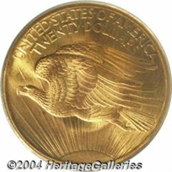 <table><tr><td><table><tr><td>1907 $20 Arabic Numerals MS66 PCGS. The first year 1907 Saint-Gaudens is an especially popular issue with collectors, and at this outstanding level of preservation it emerges as a challenging issue as well, being nearly unobtainable any finer. This radiant, well defined example displays tinges of lemon-yellow patina at the margins and has only a few inconsequential blemishes on the sun's rays and about the olive branch on the obverse. <BR><BR><B>Important notice:</B> Heritage usually auctions material at the rate of 200-250 lots per hour. On some occasions eBay Live bid software or the Internet may not be able to keep up with the pace of the auction. We recommend placing a realistic absentee bid now as insurance to avoid disappointment. Occasionally the auctioneer may eliminate or reject an eBay Live bid, and the auctioneer may also reopen a lot after the close of the eBay live bidding (usually because we missed an audience bid), and may reject your bid even if it shows you as the winning bidder. By bidding via eBay Live, you agree that Heritage may award the lot to another bidder at its sole discretion under the circumstances described above or any other reasonable circumstances. Since eBay bids are not shown to us until we open the lot on the floor, we treat those bids just like floor bids. In most cases the floor responds before the eBay bid is presented to us, due to Internet lag time, so for consistency we have made it a policy that floor bids are always considered first over tie eBay live bids. Also please note that all Heritage lots purchased through eBay Live carry a 20% Buyer's Premium. Please make sure you read the Terms and Conditions before you bid. <BR><BR><B>IMPORTANT ANNOUNCEMENT ABOUT RESERVES:</B> Heritage now divulges all reserves on its web site 7 days before every auction. If you want to know whether the reserve on this lot has been met, and if not, what the reserve amount is, please visit this lot page on the HeritageCoin.com web site, or email: bid@HeritageGalleries.com </span></font></td></tr></table></td></tr></table>