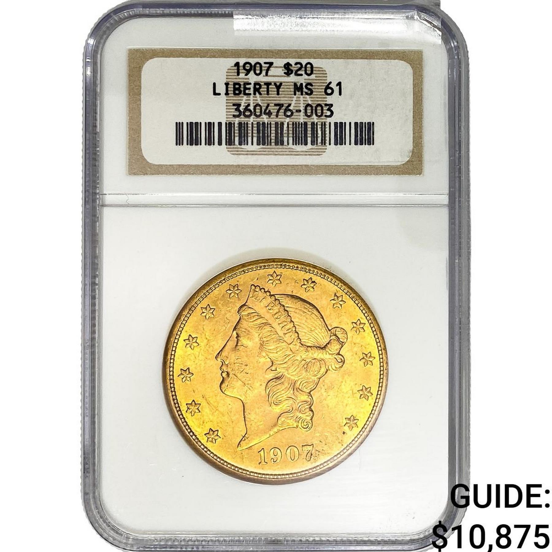 1907 $20 Gold Double Eagle NGC MS61