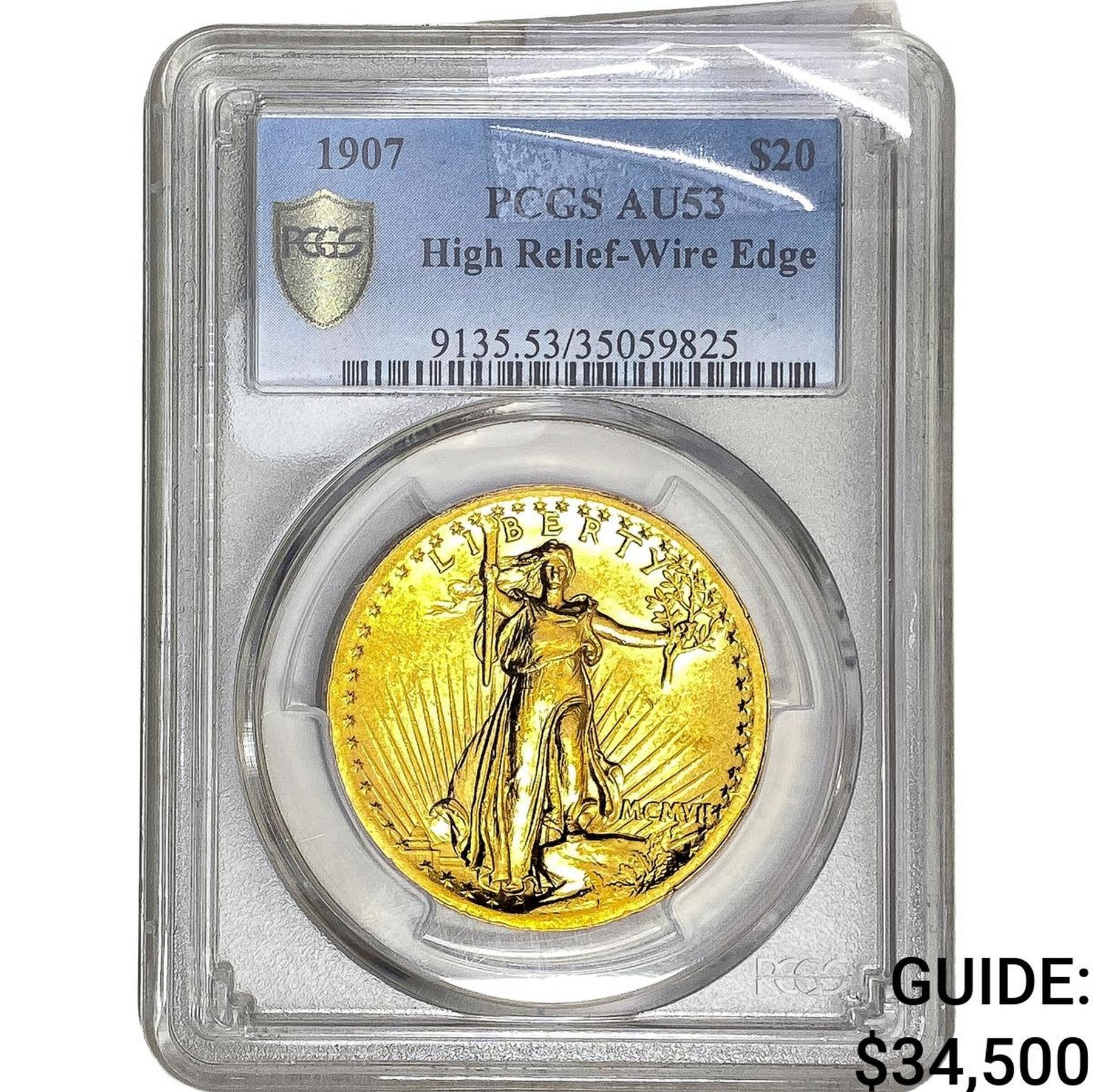 1907 $20 Gold Double Eagle PCGS AU53 HR Wire Edge