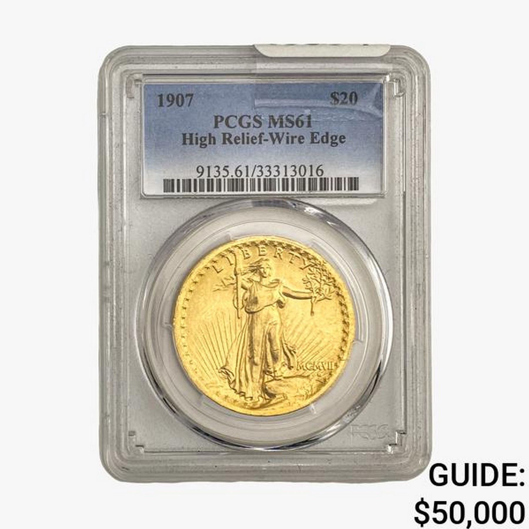 1907 $20 Gold Double Eagle PCGS MS61 HR-Wire Edge