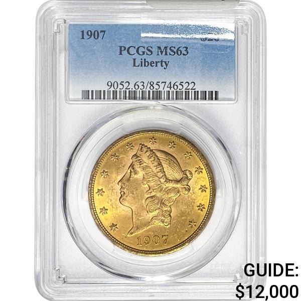 1907 $20 Gold Double Eagle PCGS MS63