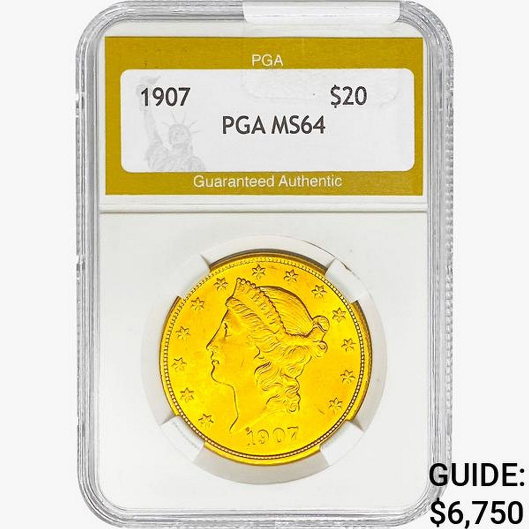 1907 $20 Gold Double Eagle PGA MS64