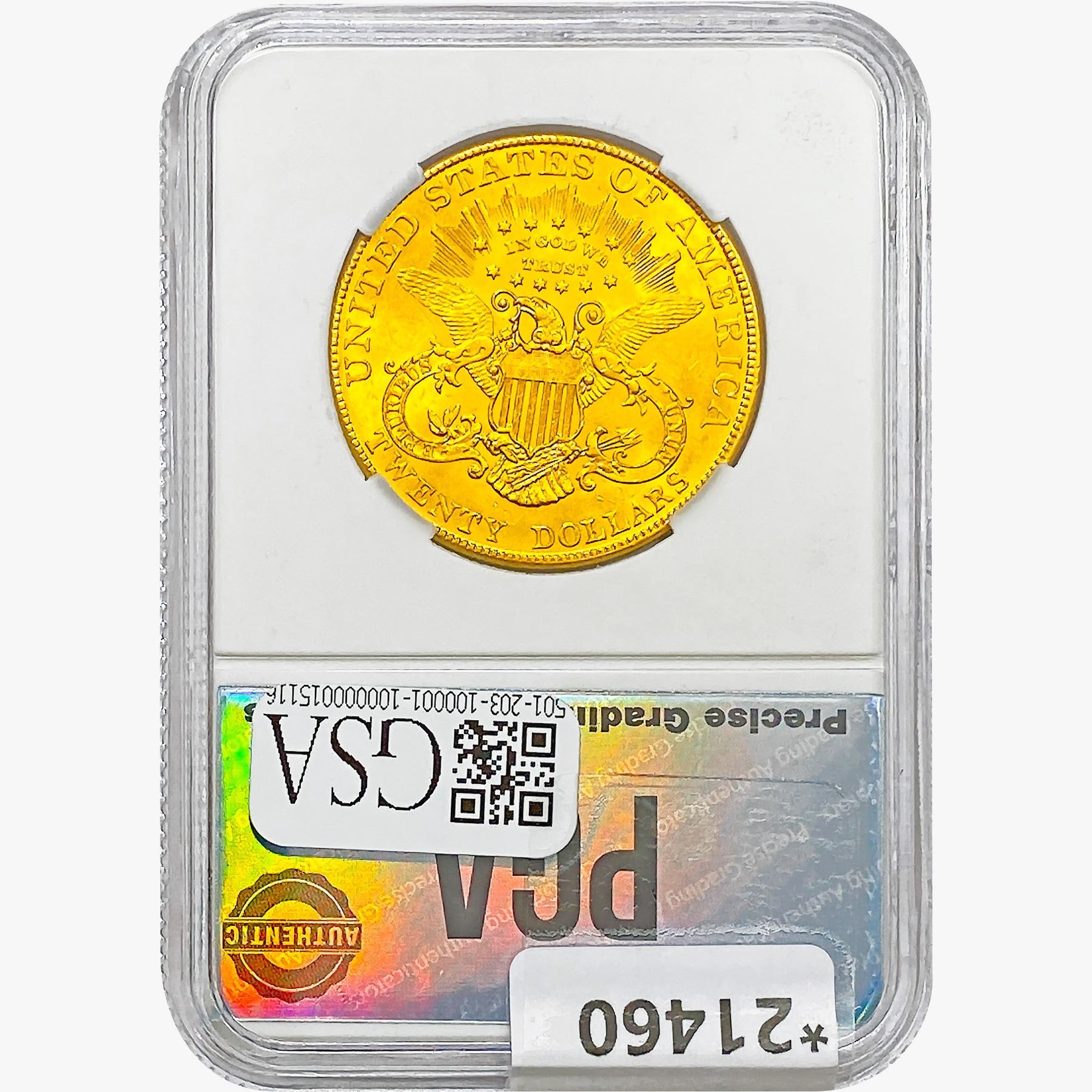 COINS AND CURRENCY LISTED IN GSA’S CATALOG AS GRADED AND ENCAPSULATED BY PCGS, NGC, ANACS, ICG, PCGS CURRENCY, PMG, PCGS BANKNOTE GRADING, CMC OR ANY OTHER THIRD-PARTY GRADING SERVICE ARE LIKEWISE SOLD “AS-IS” EXCEPT AS EXPRESSLY SET FORTH HEREIN. ALL THIRD-PARTY GRADING SERVICE GUARANTEES, INCLUDING AUTHENTICITY, ARE THE SOLE RESPONSIBILITY OF THE THIRD-PARTY GRADING SERVICE AND NOT WARRANTIES OR GUARANTEES OF GSA. BIDDERS SHOULD CONTACT THESE THIRD-PARTY GRADING SERVICES DIRECTLY WITH RESPECT TO ANY CLAIMS OR QUESTIONS THEY MAY HAVE CONCERNING THEIR GUARANTEES AND WARRANTIES. BIDDERS ACKNOWLEDGE AND AGREE THAT AUCTIONEER IS NOT BOUND BY OR LIABLE FOR ANY OPINION OR CERTIFICATION BY ANY THIRD-PARTY GRADING SERVICE. REMOVAL OF A PRODUCT FROM ITS PROTECTIVE CASING OR HOLDER OR ALTERATION OF ANY COIN HOLDER WAIVES ALL RIGHTS CONCERNING THE PRODUCT CONTAINED THEREIN.