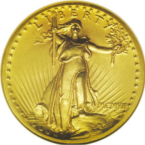 <B>1907<$20> High Relief, Flat Rim MS63 NGC.</B></I> Twenty High Relief double eagles are offered in the present sale. Only five examples are of the Flat Rim variety. All others are described as Wire Rim examples. This example is highly lustrous with rich yellow-gold color and exceptional eye appeal. All of the design details on both sides of this example are sharply defined, certainly a result of the enormous effort that was expended to produce each of the 12,367 High Relief double eagles.<BR><I>From The Ron W. Keeney Collection.</B></I>