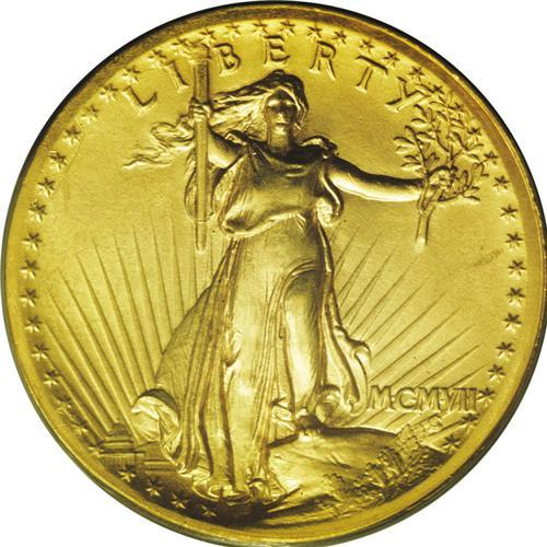 1907 $20 HR, Wire MS63 PCGS.From The Ron W. Keeney Col 1907[$20] High Relief, Wire Rim MS63 PCGS.