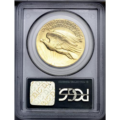 <B>1907<$20> High Relief, Wire Rim MS63 PCGS.</B></I> Housed in an older green-label PCGS holder is this delightful example. It is sharply struck and has attractive light yellow-gold color on both sides. Swirling die polish lines can be seen in the fields on both sides of this example. These same die polishing lines can be seen on proofs, where they are much crisper in appearance. Both sides have light abrasions and other minor imperfections, but none distract more than slightly from the overall visual appearance. Many collectors consider this variety to be the most beautiful American gold coinage design, and seek an example regardless of their other collecting interests.<BR><I>From The Ron W. Keeney Collection.</B></I>