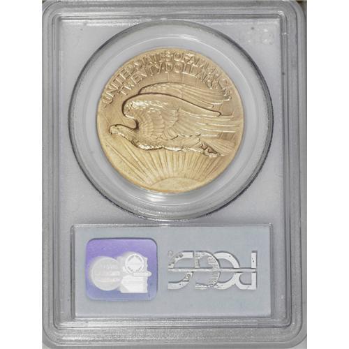 1907 $20 High Relief, Flat Rim AU50 PCGS. Its unusual