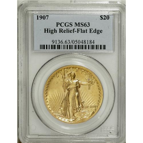 1907 $20 High Relief, Flat Rim MS63 PCGS. Several time