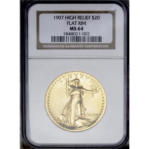 1907 $20 High Relief, Flat Rim MS64 NGC. The rim on th 1907[$20] High Relief, Flat Rim MS64 NGC.