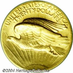 <B>1907<$20> High Relief, Flat Rim MS64 PCGS.</B></I> Although always available for a price, High Relief double eagles are coveted by numismatists for their historical importance, and because they represent the ultimate in artistic achievement for a product of the U.S. Mint. There are two variants generally collected as major varieties: the Flat Rim and the Wire Rim. A total of 11,250 pieces were minted of both varieties combined, with the Flat Rim being several times scarcer. The present near-Gem representative of this always-in-demand issue is unimpaired by any readily noticeable abrasions or other impairments on either side. The luster is unimpeded, and the eye appeal is memorable with rich orange-gold color over sharply brought up features. A very impressive coin with a full three-dimensional appearance. Population: 88 in 64, 77 finer (3/04). <BR><BR><B>Important notice:</B> Heritage usually auctions material at the rate of 200-250 lots per hour. On some occasions eBay Live bid software or the Internet may not be able to keep up with the pace of the auction. We recommend placing a realistic absentee bid now as insurance to avoid disappointment. Occasionally the auctioneer may eliminate or reject an eBay Live bid, and the auctioneer may also reopen a lot after the close of the eBay live bidding (usually because we missed an audience bid), and may reject your bid even if it shows you as the winning bidder. By bidding via eBay Live, you agree that Heritage may award the lot to another bidder at its sole discretion under the circumstances described above or any other reasonable circumstances. Since eBay bids are not shown to us until we open the lot on the floor, we treat those bids just like floor bids. In most cases the floor responds before the eBay bid is presented to us, due to Internet lag time, so for consistency we have made it a policy that floor bids are always considered first over tie eBay live bids. Also please note that all Heritage lots purchased through eBay Live carry a 20% Buyer's Premium. Please make sure you read the Terms and Conditions before you bid. </span></font></tr></table></td></tr></table>
