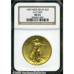 1907 $20 High Relief, Flat Rim MS65 NGC. The stor