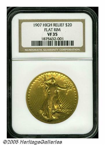 1907 $20 High Relief, Flat Rim VF35 NGC. This is