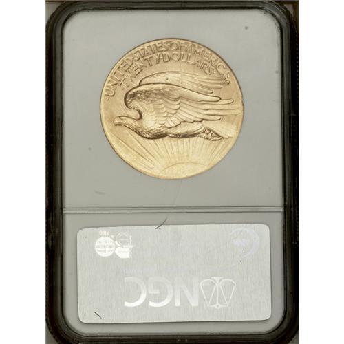 1907 $20 High Relief, Wire Rim MS62 NGC. The wire rim