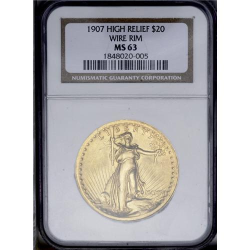 1907 $20 High Relief, Wire Rim MS63 NGC. An exceptiona 1907[$20] High Relief, Wire Rim MS63 NGC.