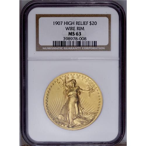 1907 $20 High Relief, Wire Rim MS63 NGC. Beautifully c