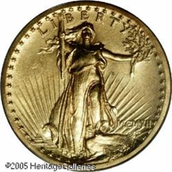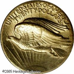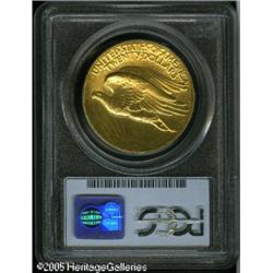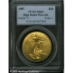 <B>1907 $20 High Relief, Wire Rim MS63 PCGS.</B></I> A lovely High Relief Twenty with exquisite striking detail and satiny luster. A few wispy abrasions are evident under close inspection that keep this coin from a Choice grade, but the fantastic eye appeal gives the viewer an appreciation for the aesthetic beauty of this much-admired design. Lot:9436