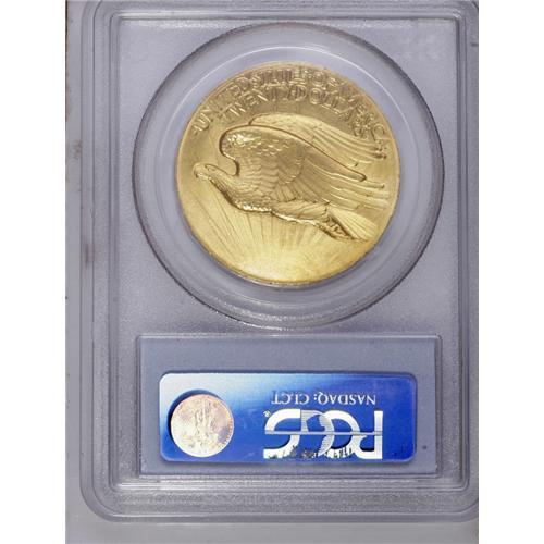 1907 $20 High Relief, Wire Rim MS63 PCGS. The satiny y