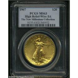 1907 $20 High Relief, Wire Rim MS63 PCGS.