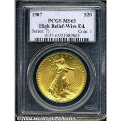 1907 $20 High Relief, Wire Rim MS63 PCGS.