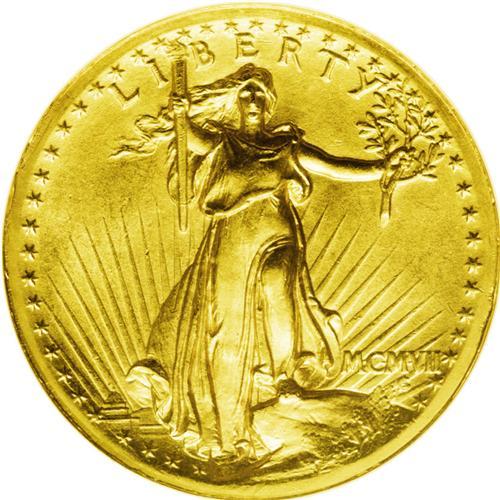 <B>1907<$20> High Relief, Wire Rim MS64 NGC.</B></I> A piece that approaches Gem status in the quality of its surfaces as well as in the excellence of its eye appeal, the present example boasts lovely yellow-gold surfaces. Much flashy luster radiates from each side of the coin, one that never fails to stun and delight viewers with its sculptural details and timeless elegance. Close scrutiny with a loupe reveals a dearth of mentionable abrasions, save for a couple of small contact marks well hidden in the eagle's feathers, and a small tick on Liberty's face. A couple of tiny alloy spots are seen on the reverse. A pretty piece, meriting a fine collection.