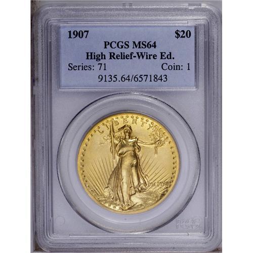 1907 $20 High Relief, Wire Rim MS64 PCGS. The High Rel 1907[$20] High Relief, Wire Rim MS64 PCGS.