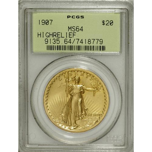 1907 $20 High Relief, Wire Rim MS64 PCGS. This is a wo