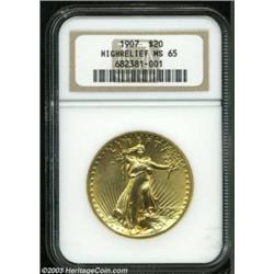 1907 $20 High Relief, Wire Rim MS65 NGC.